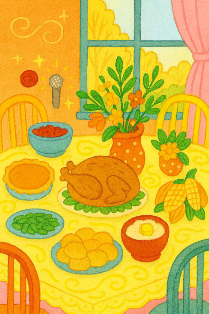 The She Shed had never looked so alive. Glitter trails from the seating chart still sparkled faintly in the corners, gravy arcs shimmered like constellations across the ceiling, and the cranberry compromise sat proudly in dual bowls at the center of the table.