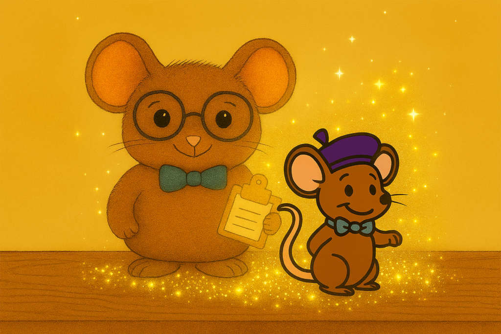 Snugbitty and Spark will be making an appearance below—glitter and all. 🐭✨