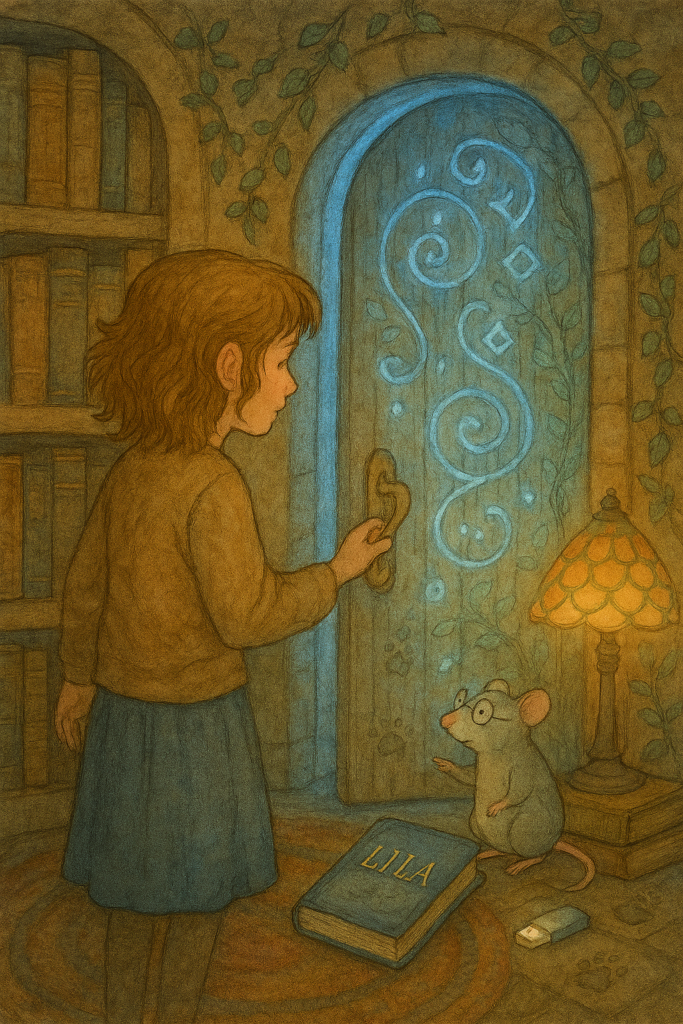 It looked like it at first—planks, hinges, a handle. But as Lila stepped closer, she saw it shimmer. The grain pulsed faintly, like it was breathing. Symbols glowed along the edges, the same soft blue as the scroll.
